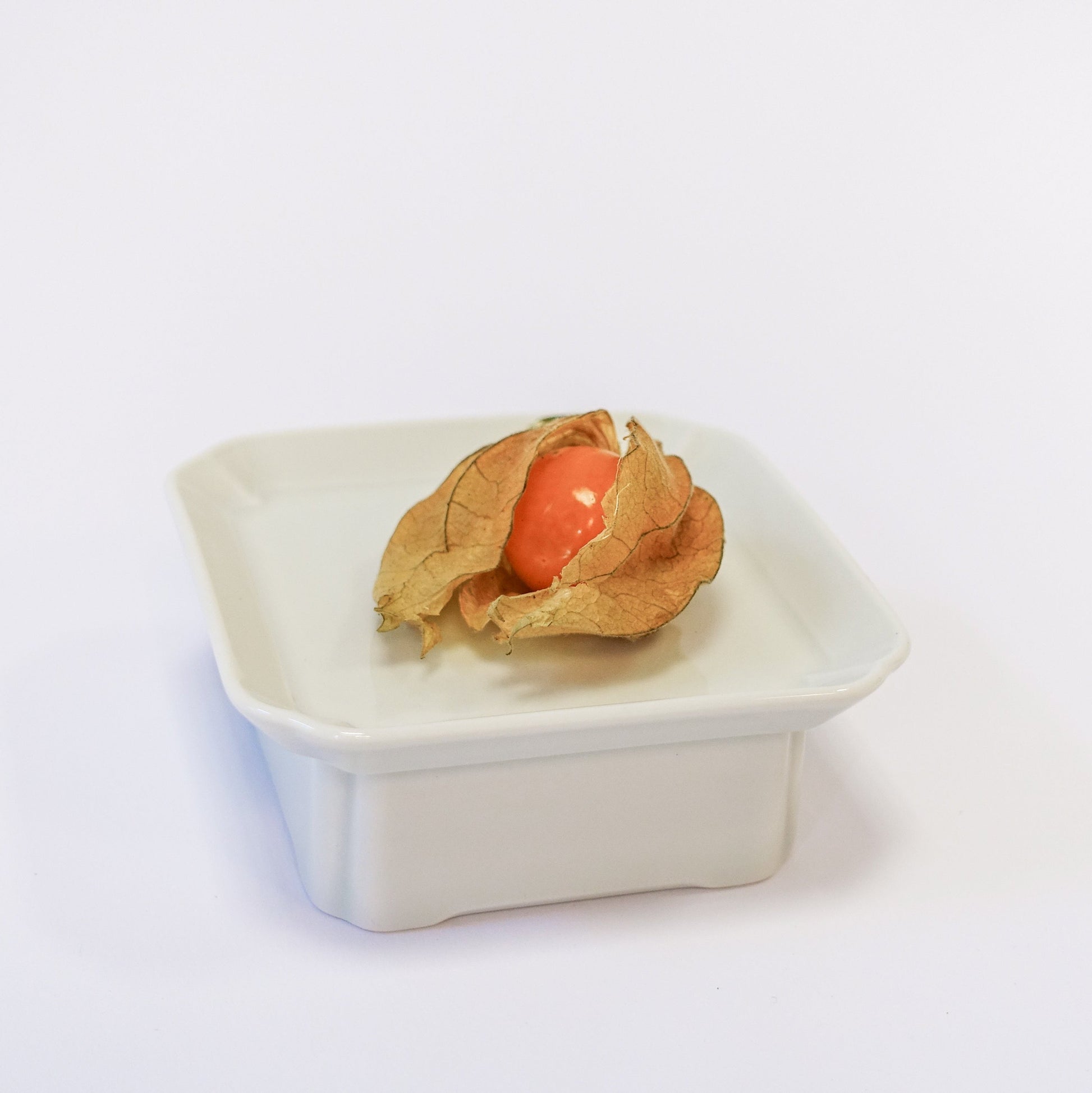 Ein Flachteller mit der quadratischen Oberseite eines Sobans (traditioneller koreanischer Esstisch). Die Ecken im koreanischen Stil vermitteln einen zarten Eindruck und das geradlinige und minimalistische Design erleichtert die Aufbewahrung. Durch die kompakte Größe eignet er sich perfekt als Dessertteller für kleiner Häppchen.